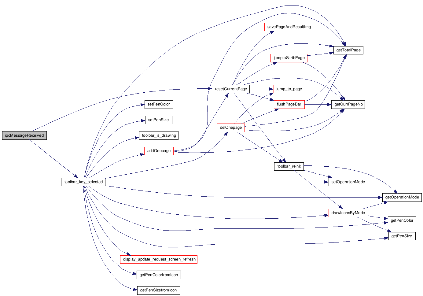 00053 { 00054 char szBuffer[SCRIB_SERVER_BUFFER_SIZE]; 00055 int nBuf = SCRIB_SERVER_BUFFER_SIZE; 00056 erIpcCmd_t command; 00057 int iconID; 00058 int iconState; 00059 00060 PScribbleUICtx pScribbleUICtx=(PScribbleUICtx)data; 00061 00062 erIpcGetMessage(srvChannel, szBuffer, &nBuf); 00063 SB_IPCPRINTF("get msg ok\n"); 00064 if (vwrParseCommand(szBuffer, &command) >= 0) 00065 { 00066 switch ((int) command.cc) 00067 { 00068 case ccVwrJumpToPage: 00069 SB_IPCPRINTF("\nServiceCallBack: ccVwrJumpToPage %d\n", 00070 atoi(command.arg[1])); 00071 resetCurrentPage(pScribbleUICtx,atoi(command.arg[1]) ); 00072 SB_IPCPRINTF("reset page ok\n"); 00073 break; 00074 case ccVwrToolbar: 00075 iconID = atoi(command.arg[0]); 00076 iconState = atoi(command.arg[1]); 00077 SB_IPCPRINTF("Toolbar iconID [%d] iconState [%d]", \ 00078 iconID, iconState); 00079 toolbar_key_selected(iconID, iconState, pScribbleUICtx); 00080 break; 00081 default: 00082 SB_ERRORPRINTF("UNKNOWN COMMAND\n"); 00083 } 00084 } 00085 }